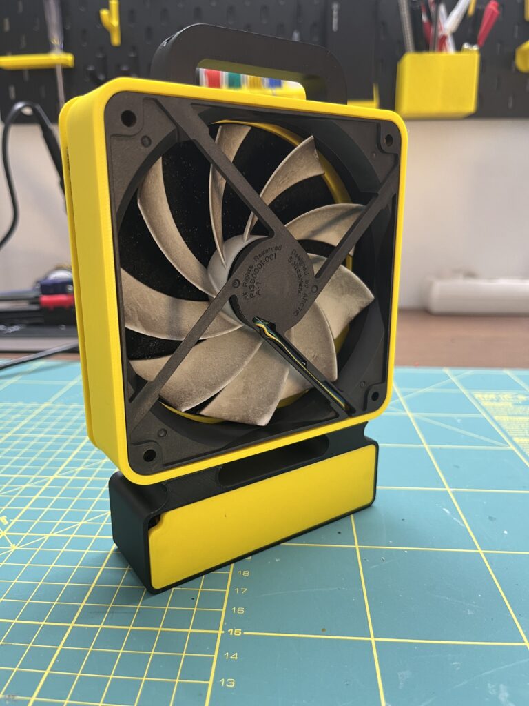 Well, a couple hours of 3D designing, printing and soldering later, I got myself my own solder fume extractor.