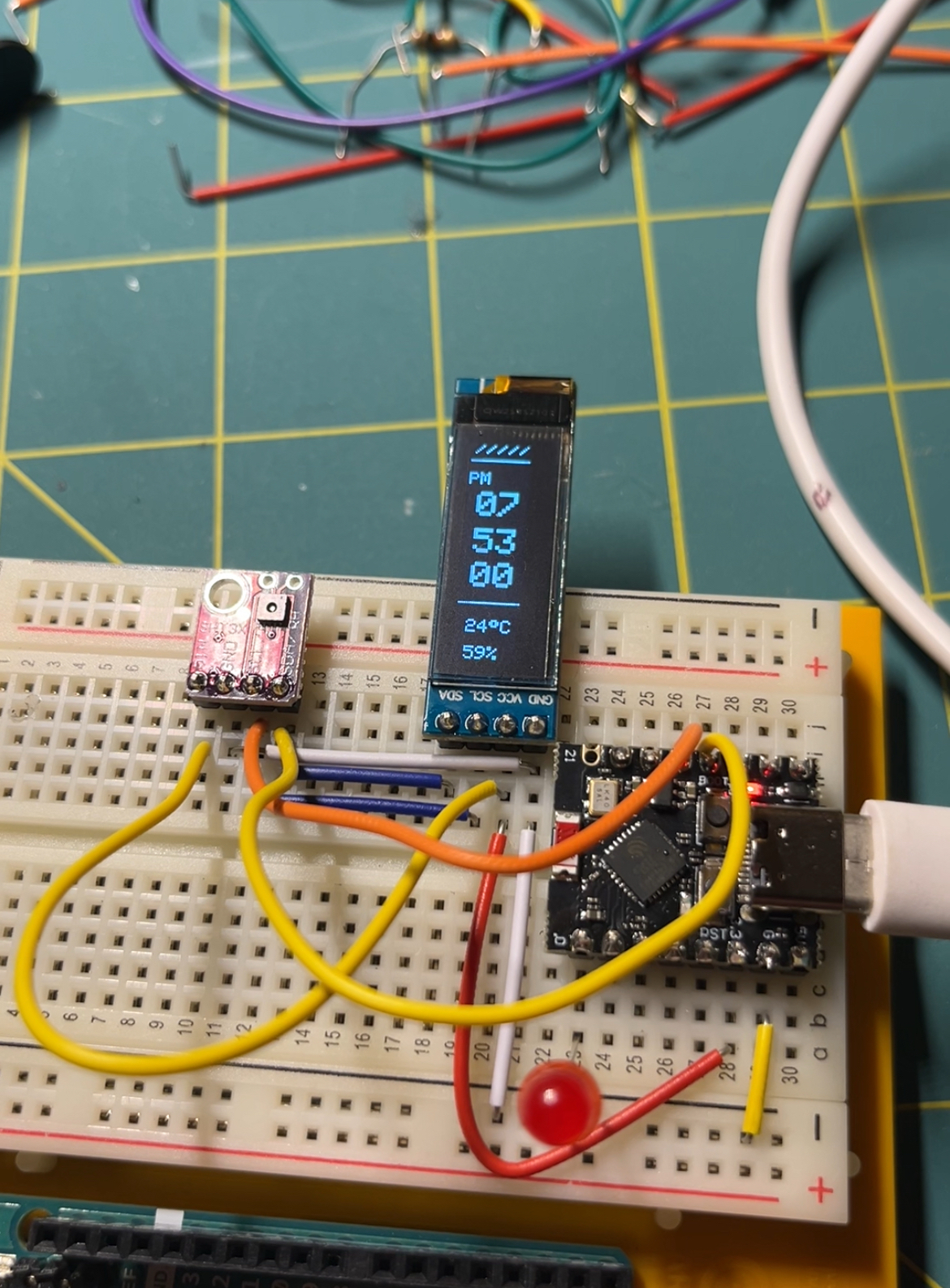 The humidity sensor and the screen are both connected to the ESP32 using the I2C serial databus, which is very common for components like this.